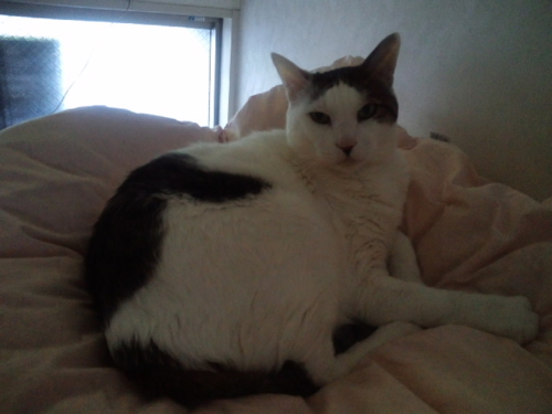 寝ている猫の格好が可愛いので写真を撮ろうとしたら、iPhoneを取り出しただけで気づいて嫌な目つきで睨んだ挙句、顔を隠してしまった。