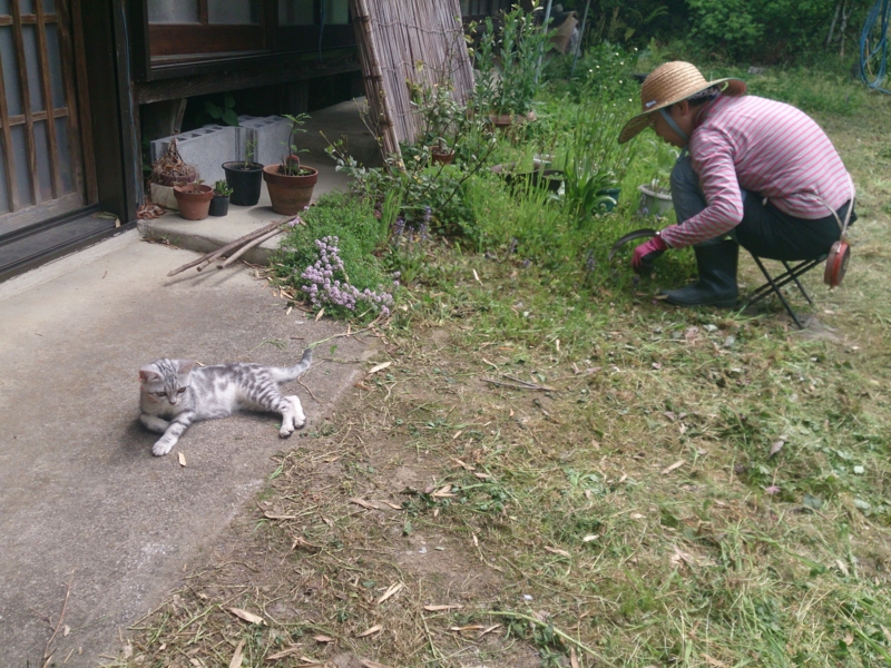まめ夫さんとおばあちゃんが出かけたのでソファでゴロゴロする飼い主あさゆりの足元で猫ズもリラックス。