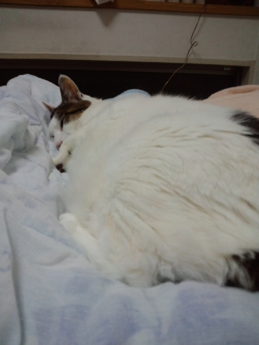 朝、私が起きた時に一度挨拶でもするように起きてきた猫は、その後すぐ二度寝に入ってしまった。