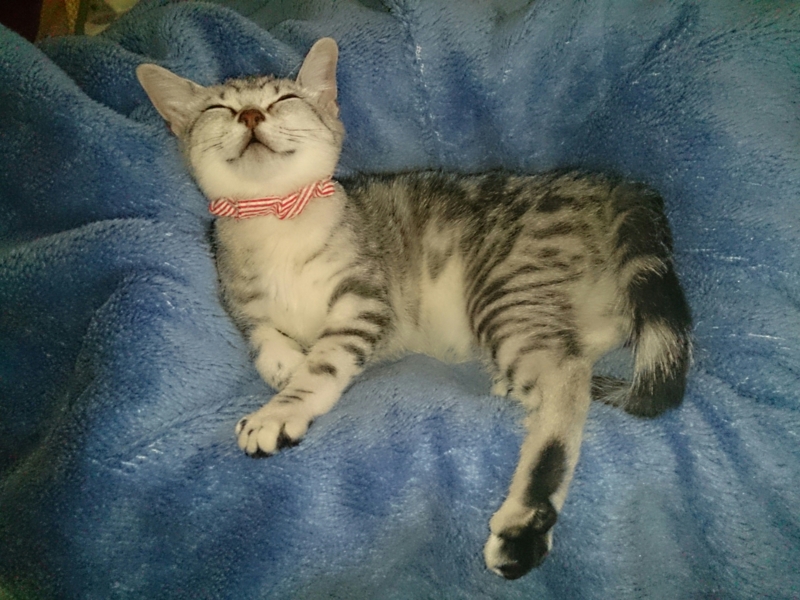 お腹の湿疹(ハゲ)が増えてきたようなのでお医者さんに連れて行こうかと思ったけれど、気持ちよく寝ているなら、そのまま寝かせておいてやろうっと。