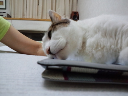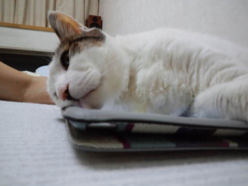 この下から3段めに乗って、猫トイレの掃除をしてるわたしの頭を可愛いおててでぺしぺししてくれたりします。