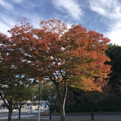 青い空に灰色の雲がうかぶぬるい空気の朝でした