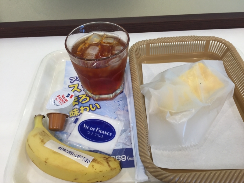いまサービスでゆでたまごかバナナかヨーグルトがついてくるそうで、バナナを選んでみた。