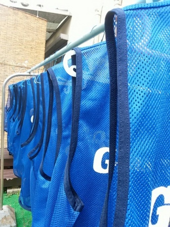 ようやく昨日干した生乾きのビブス、乾いてくれます。