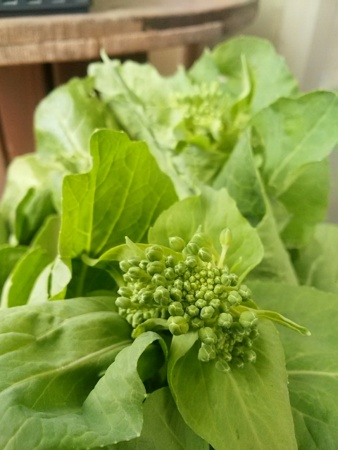 昨日、この暖かさから野菜も花芽がムクムクと出てしまい、花芽のでた野菜を全部収穫してきた。