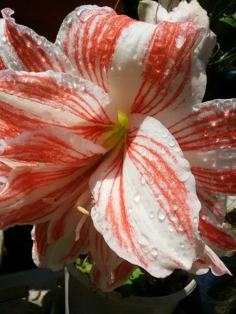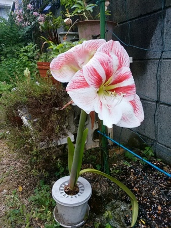 昨夜は湿ったような風が強く、朝起きると鉢植えのアマリリスが風の当たらない所に下ろしてありました。