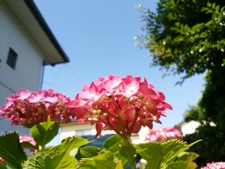 暑くなって赤いアジサイがいっそう暑そうに見えます。