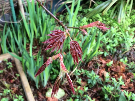 昨日の暖かい雨で庭の樹の新芽が