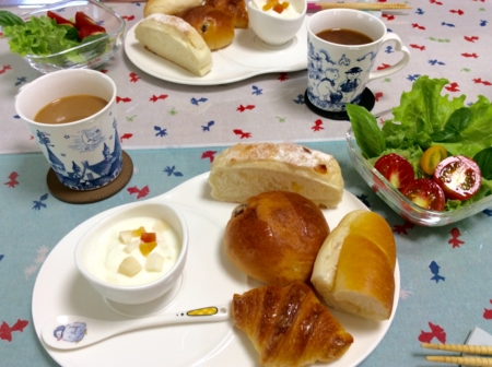 いつも一人の朝食に息子が二人いて賑やかです。