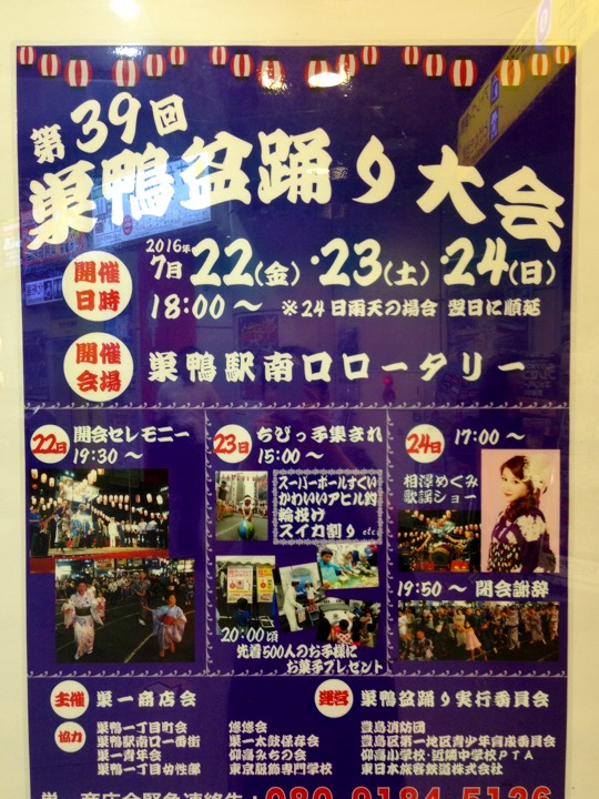 巣鴨ではちょうど盆踊りですが、見に行けなさそう。ざんねん〜(´・ω・`)