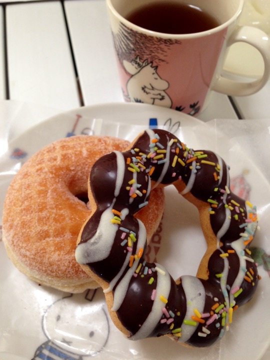 昨日のスーパーフライデーでいただいたドーナツを朝食にしました。