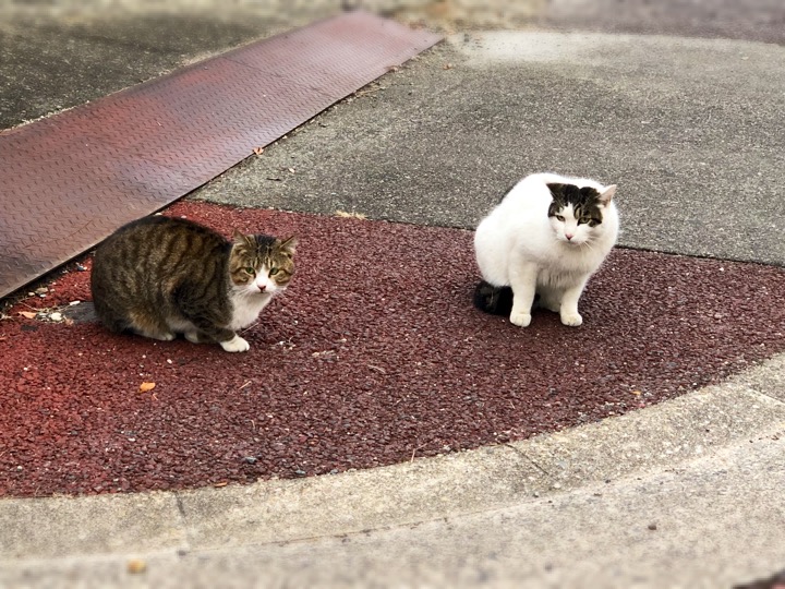 駅に向かう途中猫たちに遭遇したので挨拶したら、怪訝な顔をされました( ̄▽ ̄)