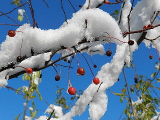 初雪のようなふわふわ枝に積もった姿は綺麗…