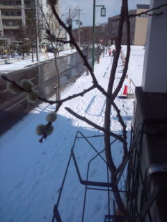 バス停までの道のりで、昨日今日の暖かさに誘われてこぶしが今にも咲きそう。