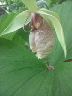 一昨年山登りをする若いお友達から頂いたクマガイソウが2輪咲きました。