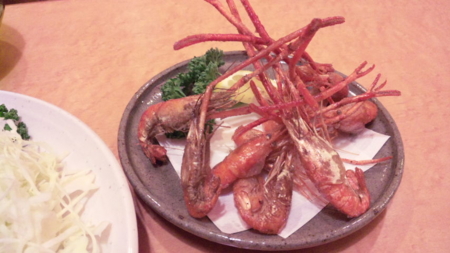 画像は幸せ気分でつまんでた川海老の唐揚げ。手が長くて塔の様だった~
