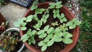 あさがおを植え替えなくてはならないほど発芽、成長中。