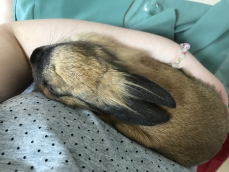↓手乗りインコならぬ腕乗りうさぎw