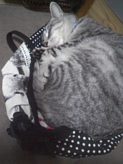 今日作ったグラニーバッグは、気が付いたらお猫さまが占領…