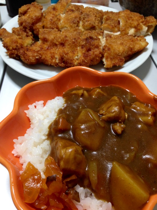 カレーの付け合わせ?にチキンカツを買って来たら、かなりでかかった。