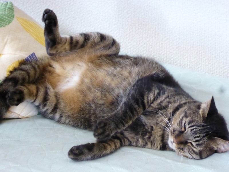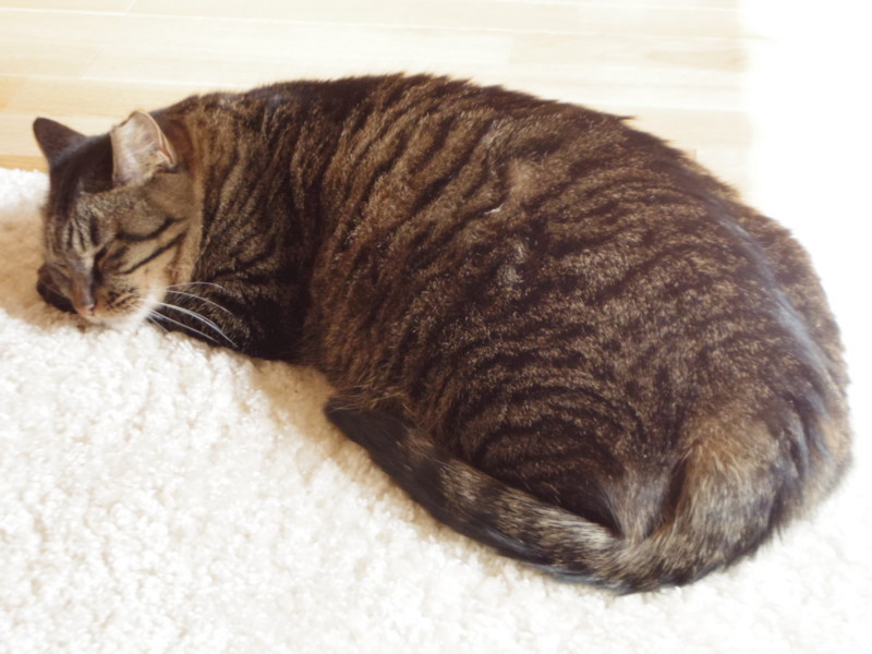 肉も食べたし、元気いっぱい眠ります。おやすみなさい。