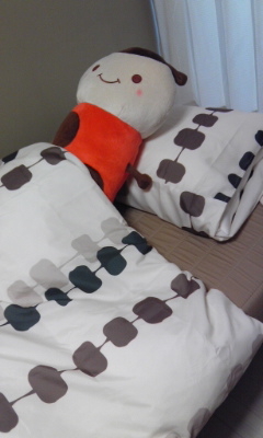 朝、干して昼休みに取り込みに部屋に帰ってくるのを二日繰り返したお陰で、ふわふわさらさら布団でおやすみです。