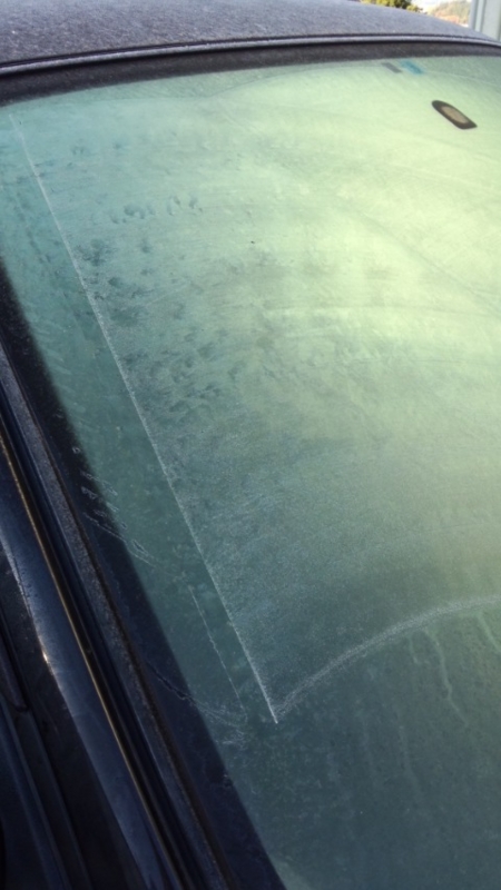 泣く泣く車から下りて、寒冷地のみなさまにはおなじみの、三角のアレで霜を掻き落としたわけです。