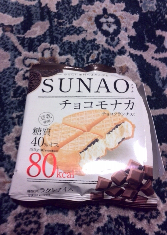 甘いものを過剰摂取してしまうので、カロリーの低いこのシリーズをコンビニで買ってきました。ソフト型は物足りなかったけど、このモナカはチョコがきいててなかなか美味しいです。