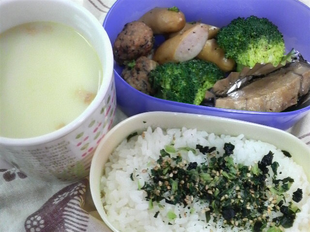 ヒジキボール(冷凍品)、ウインナ、ブロッコリー炒め