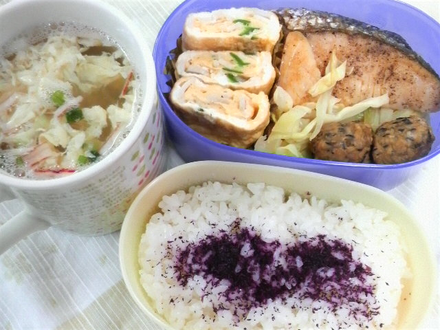 鮭ステーキキャベツ添え(昨夜のおかずから取り置き)