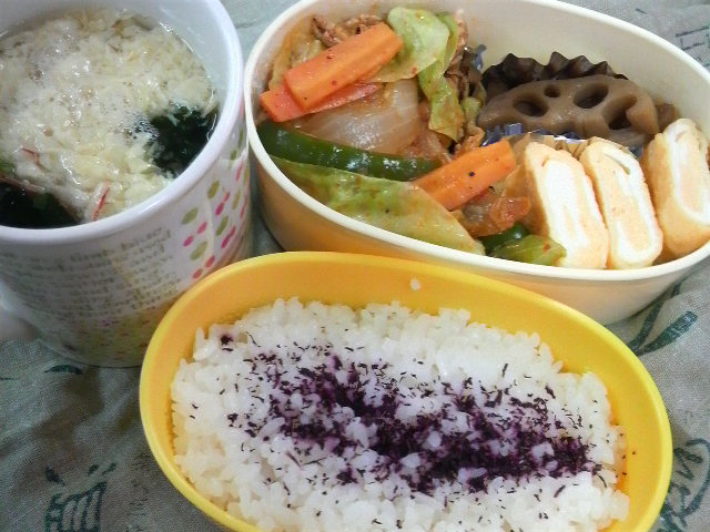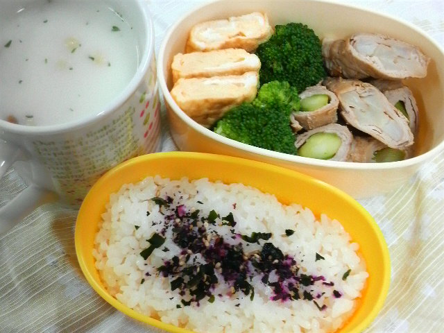 ちっとも暖かくない社内なのでカップスープは必須です。