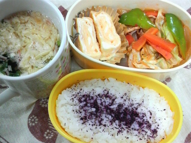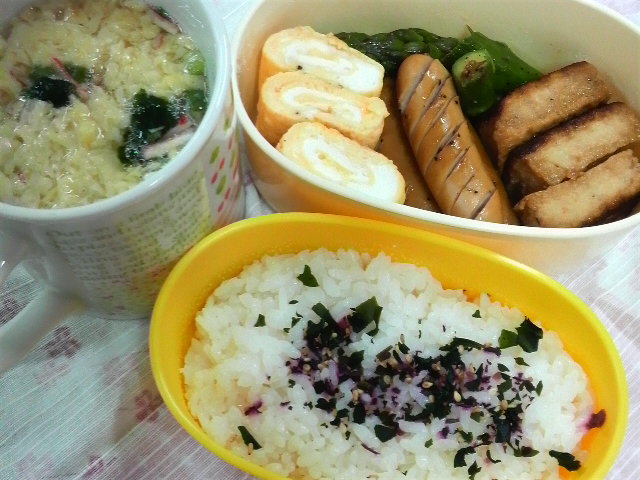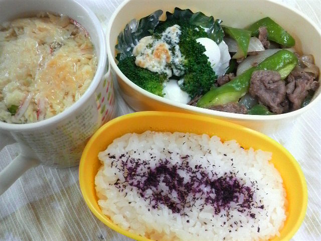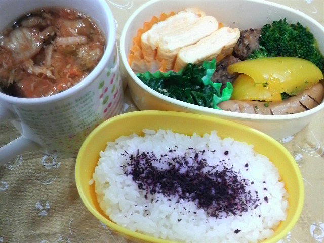 ウインナ、パプリカ、ヒジキボール(既製品)、ブロッコリー炒め