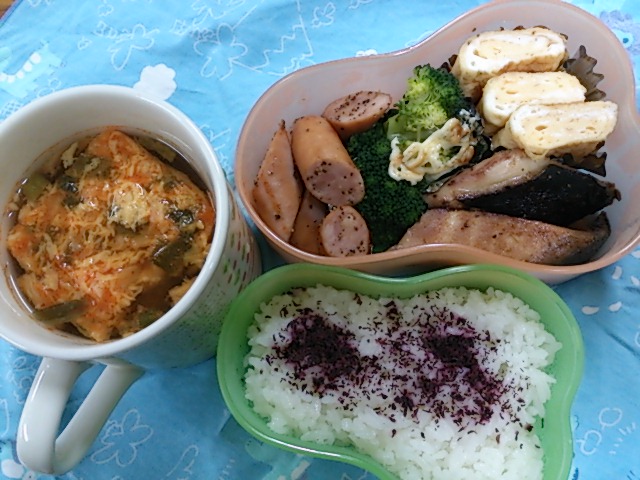 イカ、菜の花、パプリカ、さつま揚げ炒め(夕飯取り置き)