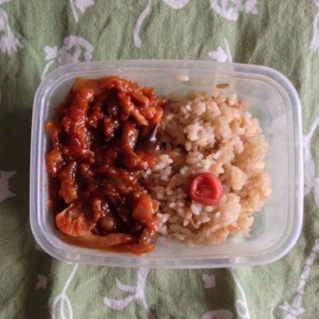 明日のね。がんもどきと厚揚げ、じゃがいもの煮物に、カニカマ刻みネギ水切り豆腐を混ぜて焼いたものに、ひじきごはん。冷蔵庫にしまったの、明日忘れず持って行けますように!