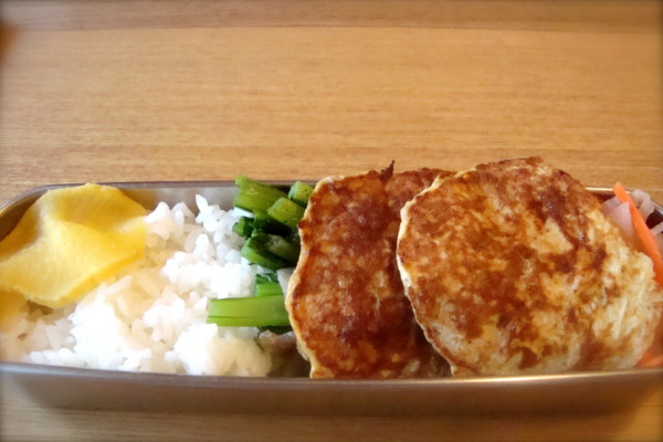 パセリの下にきんぴらとマッシュポテトが埋まってるので、見た目ほど野菜少なくないのですが、ぱっと見以上に実際は茶色い弁当です。