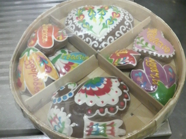 プリャーニクという手作りお菓子です。防腐効果のある白樺のカゴに入ってます。こってる。