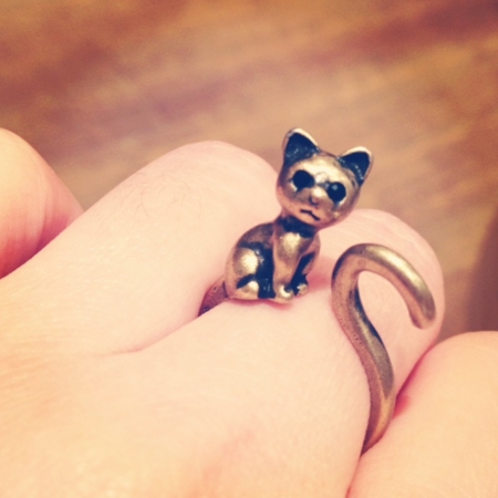 表情が微妙な猫のリングは500円。