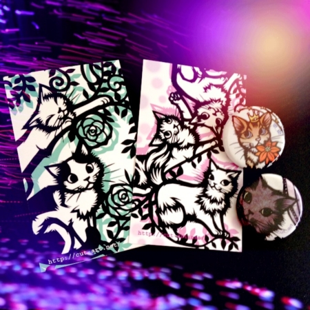 メッセージカードとウチの子に似てる缶バッチ。
