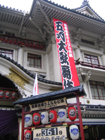 千円くらいで一幕(ほぼひとつの演目)観劇できる幕見席ってのがあるのですが、それは天井にいちばん近い四階くらいになるのですけど、そこにいくにはエレベータとかエスカレータなんてものがなくて、実は階段です(で、その幕見席のところの自販機が、まあ、高いのですが、それはさておき)。そういう建物っす。歌舞伎座って。