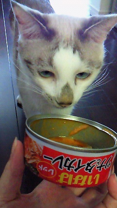 缶を開けた音にブルーが来たから、匂いを嗅がせると ガッカリしてました。(^p^)