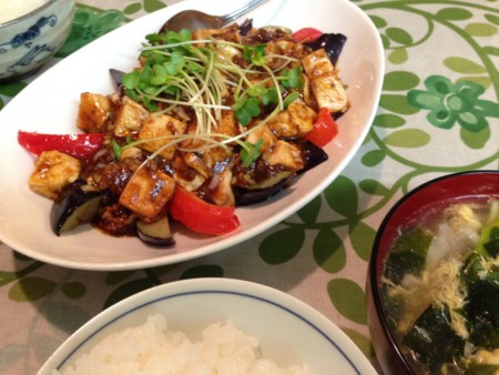 素揚げした茄子とパプリカを敷いた上に麻婆豆腐を掛けたら…と以前から思ってた。