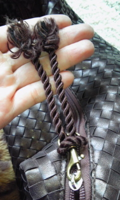 ついでにこのバッグ、ファスナーの共布の頭部分が引きちぎれましてね、なんかそれらしいチャームか同じような皮紐を買ってつけるか…と思って、手芸品店に行くと高いじゃないの!