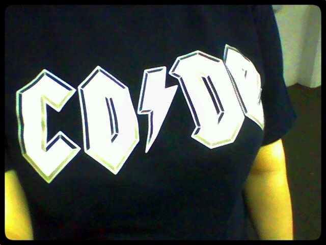 私のTシャツはAC/DCじゃないですよ。CODEです。