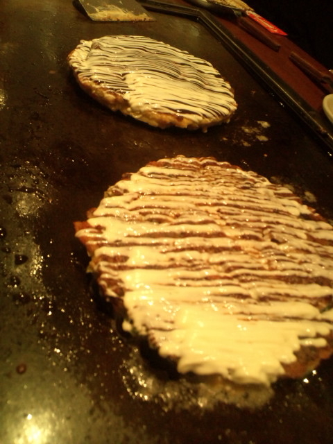 ねぎ焼き×2種、アキバ焼き(2~3人分の大きさ)、ミックス焼き、オムそば、豚平焼き…。