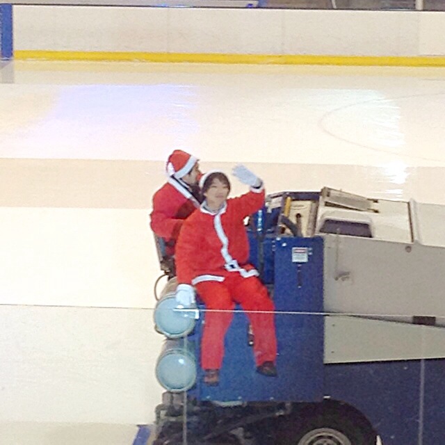 本日は恒例のクリスマスゲームズなので製氷作業もサンタが行います。