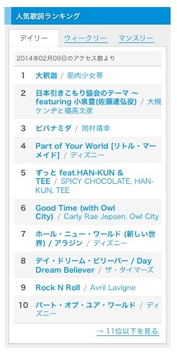 人気歌詞ランキング第1位!
