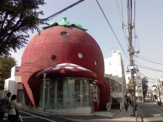 どうせタクシー帰りだから、いちご形のサンリオショップを拝みにきた。