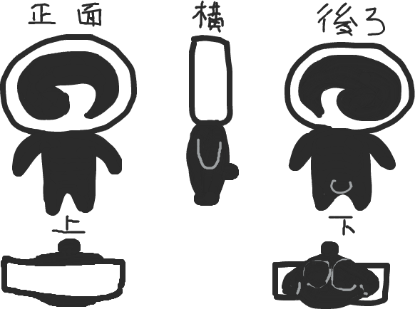 黄色い頭に水色の胴体と手足。スマートだけど輪郭線はまるっとしている。