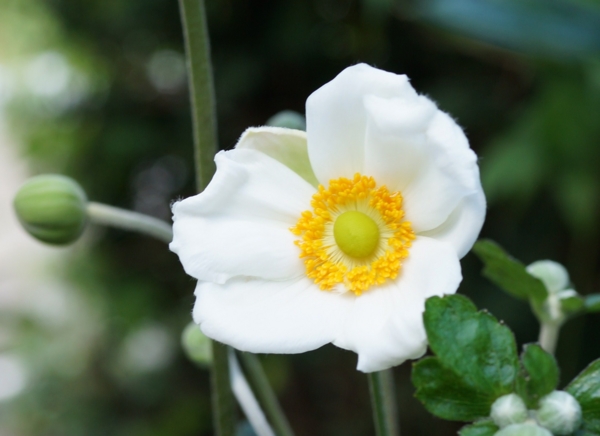 庭では、白と赤紫の「秋明菊」がたくさん咲いている。