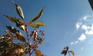 花盛りのコスモス。水汲みに行く途中、段々畑の小さな数枚の畑に咲いてはいましたが、登って行くと広い畑一面がピンクに染まっていたので驚きました。帰り道で見ると後ろの山の紅葉が輝いて何とも不思議な感覚でした。